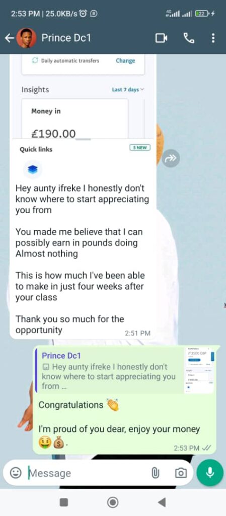 Popularly known for her mastery in Sales and Marketing, Ifreke helped her students become financial independent from earning 5, 6 and 7 Figures in 2024 alone.